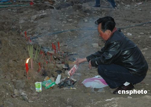 圖:北川中學(xué)廢墟前祭奠孩子的家長