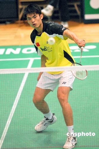 十一月二十六日晚,中國(guó)選手林丹在香港伊利沙伯體育館舉行的二零零八香港公開羽毛球超級(jí)賽首輪比賽中,以二比零戰(zhàn)勝蘇格蘭選手艾力斯達(dá),成功晉級(jí)十六強(qiáng)。中新社發(fā) 鄧慶樂(lè) 攝