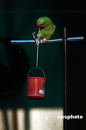 2008年11月30日,幾只鸚鵡正在浙江紹興市百鳥樂園里為游客們耍各種雜技。中新社發(fā) 李瑞昌 攝