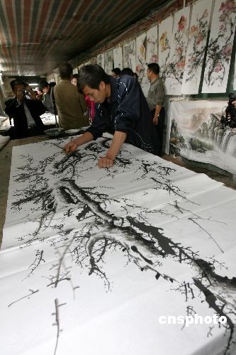 著名的奧運(yùn)之鄉(xiāng)、全國舉重之鄉(xiāng)廣西桂林五通鎮(zhèn),依靠桂林常年旺盛的游客資源,農(nóng)民繪畫產(chǎn)業(yè)蓬勃發(fā)展。全鎮(zhèn)800多農(nóng)民從事繪畫,年產(chǎn)值達(dá)8000多萬元,成為名副其實(shí)的藝術(shù)之鄉(xiāng),全國文化(美術(shù))產(chǎn)業(yè)示范基地。中新社發(fā) 王麗南 攝