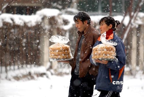 12月2日,新疆烏魯木齊市兩位維吾爾族市民手捧為即將到來的古爾邦節(jié)特意購買的馓子,匆忙回家。受西西伯利亞南下的強冷空氣影響,從12月1日白天開始到2日夜間,新疆主要以降溫大風天氣為主,同時新疆北部地區(qū)將有較明顯的降雪。中新社發(fā) 劉新 攝