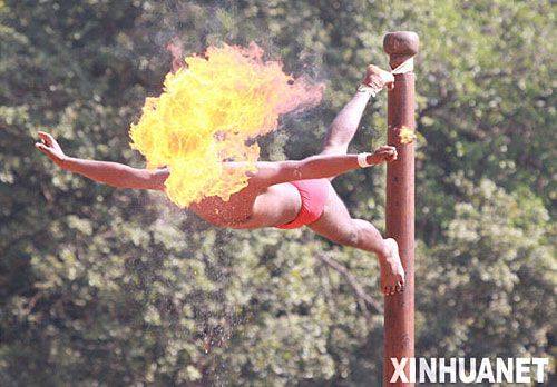 印方參訓(xùn)分隊(duì)進(jìn)行軟木桿操噴火演示。
