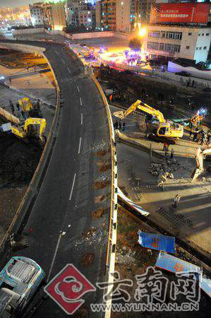 昨日19時(shí)30分許,昆明小莊立交橋下昆曲匝道橋在拆除時(shí),發(fā)生橋面坍塌。經(jīng)初步調(diào)查,事故造成2人死亡、4人受傷,受傷人員被及時(shí)送醫(yī)院救治。事故發(fā)生后,昆明市張祖林市長(zhǎng)、杜敏副市長(zhǎng)、陳勇副市長(zhǎng),省交通廳吳衛(wèi)平副廳長(zhǎng)隨即趕到現(xiàn)場(chǎng)組織指揮處置工作,成立事故處置現(xiàn)場(chǎng)指揮部,昆明市公安、衛(wèi)生、建設(shè)、安監(jiān)、交通等部門工作人員趕赴現(xiàn)場(chǎng)處置,立即啟動(dòng)《昆明市突發(fā)公共事件總體應(yīng)急預(yù)案》及相關(guān)部門專項(xiàng)預(yù)案,調(diào)集昆明市建筑工程應(yīng)急救援隊(duì)到達(dá)現(xiàn)場(chǎng),按有關(guān)規(guī)程開(kāi)展現(xiàn)場(chǎng)搜尋、救援、清理、疏通、善后等工作。經(jīng)專家組現(xiàn)場(chǎng)初步勘查,小莊立交橋拆除中發(fā)生坍塌的主要原因?qū)偈┕挝贿`反操作規(guī)程,導(dǎo)致被拆除橋梁突然坍塌。目前,事故救援及善后等相關(guān)工作正有序進(jìn)行。