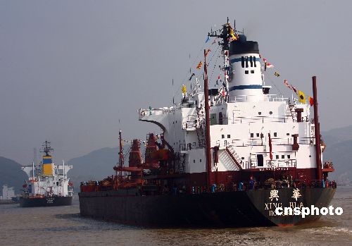 由福州港開出的共有4艘船舶分別為:華航3號、吉祥山號、金海緣號、興華號。中新社發(fā) 祝敏松 攝
