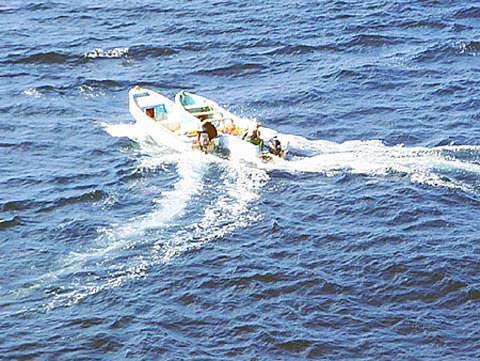 12月17日早上當(dāng)?shù)貢r(shí)間8時(shí)。亞丁灣。2艘白色小艇向“振華4號(hào)”整機(jī)運(yùn)輸船駛來(lái),在賊艇距離“振華4號(hào)”大約4海里處,船長(zhǎng)彭維源果斷拉響了全船警報(bào)!