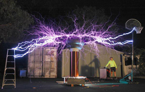 特倫在做實(shí)驗(yàn)時(shí),習(xí)慣用一根釣魚竿調(diào)節(jié)閃電束的輻射方向。為了營(yíng)造出五光十色的奇特效果,他通過安裝在照相機(jī)上方的一個(gè)濾色轉(zhuǎn)盤,讓“人造閃電”呈現(xiàn)出不同的顏色。由于特倫利用的是“超長(zhǎng)曝光”攝影技術(shù),因此能夠在同一張照片中記錄下長(zhǎng)達(dá)十幾秒的閃電效果。特倫表示:“在照片上,你看得見電火花,卻看不到它們究竟是從哪里冒出來的。這是一種虛幻的效果,可是并非借助Photoshop處理而來——所有一切都是用相機(jī)記錄下來的(真實(shí)影像)!