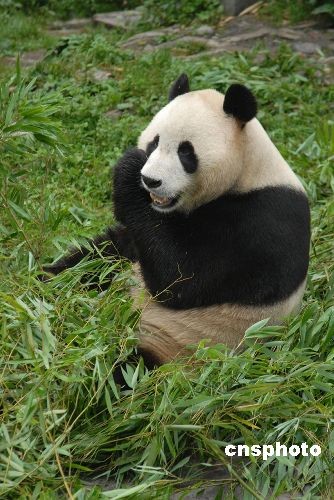 2008年12月,團(tuán)團(tuán)!皥A圓快來(lái)呀,我發(fā)現(xiàn)竹子啦,一般人咱不告訴他!”。中新社發(fā) 羅小韻 攝