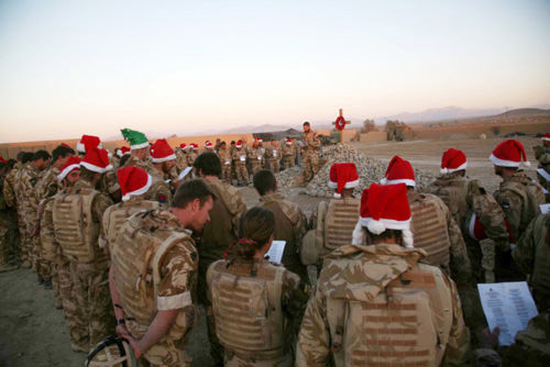 阿富汗哈爾門德省的黃昏,落日掛在灸烤了一天的大地上。英國(guó)海軍陸戰(zhàn)隊(duì)的士兵們戴著圣誕帽,集結(jié)在戰(zhàn)爭(zhēng)紀(jì)念碑前,唱起圣誕節(jié)頌歌。