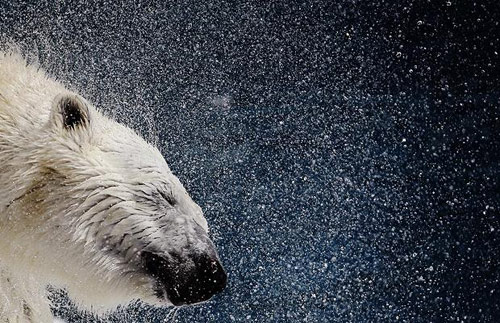 正在抖去身上水的北極熊,獲得“濕漉漉的野生動物”獎(jiǎng)的提名。