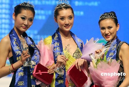 12月25日晚,2008百代流芳模特大賽中國總決賽”在北京海淀劇院上演。選自中國各分賽區(qū)的18位佳麗先后進(jìn)行了內(nèi)衣、休閑裝、中國歷代服飾和晚裝等多個比賽環(huán)節(jié)的角逐,最終由11號選手高潔摘得桂冠,15號選手刑璐和07號選手李卓分別獲得亞軍和季軍。中新社發(fā) 錢興強 攝