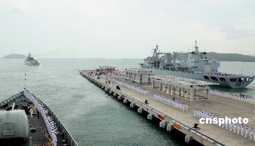 圖為中國人民解放軍海軍艦艇編隊(duì)陸續(xù)駛離碼頭。中新社發(fā) 孫自法 攝