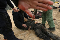 巴勒斯坦人在加沙城幫助在以軍空襲中受傷的同胞。