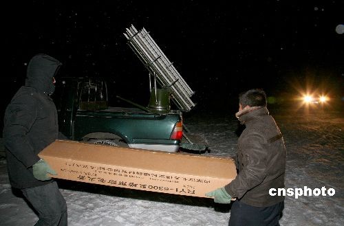 圖為12月26日,新疆哈密人工增雪工作人員在搬運(yùn)增雪火箭彈。