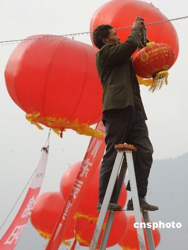 圖:大紅燈籠高高掛 地震災(zāi)民迎新年