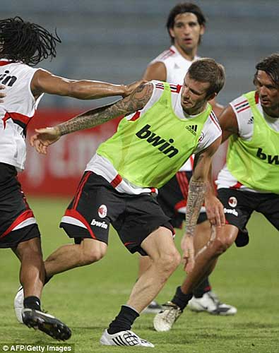 圖:貝克漢姆球場(chǎng)上炫耀新紋身