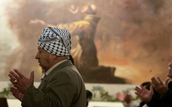 12月31日,一位在西岸城市拉馬拉為和平祈禱的巴勒斯坦男子。面對(duì)國(guó)際社會(huì)巨大壓力,以色列仍然拒絕停止對(duì)加沙地帶的大規(guī)?找u,最新統(tǒng)計(jì)數(shù)字顯示,空襲已造成至少400人死亡,近2000人受傷。