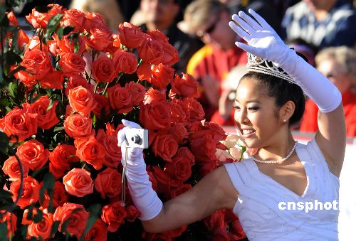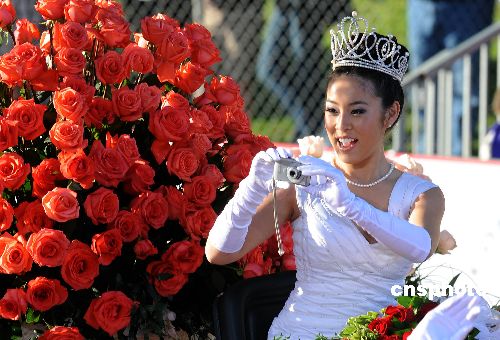 當地時間1月1日上午,第120屆美國玫瑰花車大游行在美國加州帕薩迪納市正式舉行。17歲華裔學生李君慧以第91屆美國“玫瑰皇后”的身份,引領玫瑰花車展開盛大游行。 中新社發(fā) 張煒 攝