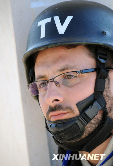 圖:記者戴鋼盔穿防彈服在加沙進(jìn)行報(bào)道(3)