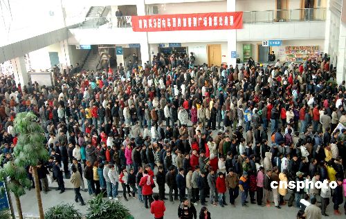 1月11日,中國春運首日早晨,福州火車站售票大廳內擠滿了等待購買春運期間返鄉(xiāng)火車票的旅客。春運期間,福建省客運量將超8000萬人次,比去年增長1.9%。其中鐵路360萬人次,增長2.3%。中新社發(fā) 劉可耕 攝