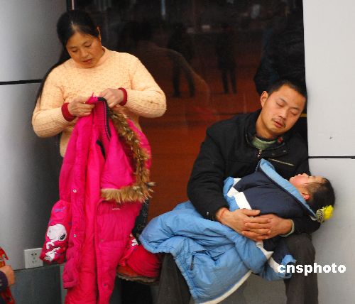 父女已經在等待中睡著了。中新社發(fā) 許康平 攝