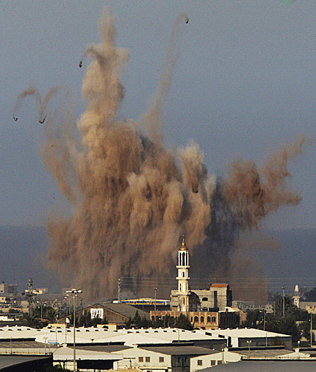 1月14日,以軍把打擊哈馬斯的攻勢(shì)進(jìn)一步深入到加沙地帶的主要城鎮(zhèn),爆炸聲和機(jī)關(guān)槍猛烈開火的聲音響徹整個(gè)加沙城。以軍飛機(jī)在夜間共發(fā)動(dòng)60多次空襲,攻擊重點(diǎn)集中在靠近埃及邊境被用來(lái)偷運(yùn)武器的地道。在加沙城郊街頭,以軍部隊(duì)與哈馬斯民兵展開激戰(zhàn)。巴勒斯坦急救部門在加沙地帶的負(fù)責(zé)人哈撒內(nèi)14日宣布,沖突已經(jīng)造成1001名巴勒斯坦人死亡,另有4580人受傷,其中很多死者是平民。