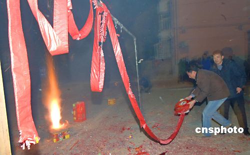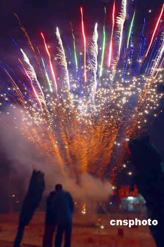 1月26日中國農(nóng)歷新春到來之時,北京市民燃放煙花爆竹,度過不眠之夜,爆竹聲聲過春節(jié)。中新社發(fā) 鄒憲 攝