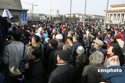 正陽門原計劃三日十二時至十六時免費開放,但早九點已有兩、三千市民在門口繞圈排起了長龍。人群中,有年過八旬的老太太,有從京郊乘車近兩小時趕來的市民。據(jù)一位市民透露,還有人凌晨三點即來排隊,不但可拿到中國人民解放軍入城式六十周年紀念券、捷足先登城樓看展覽,更能穩(wěn)得當日僅發(fā)放一百份的珍貴紀念品。