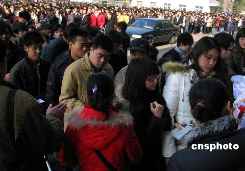2月5日,“第三十四屆京城(北京)職場(chǎng)--2009年首場(chǎng)人才招聘會(huì)”,在全國農(nóng)業(yè)展覽館新館開幕。 招聘會(huì)設(shè)立了約400個(gè)展位,應(yīng)聘的北京高校學(xué)生多達(dá)約幾萬人次,場(chǎng)面異;鸨。