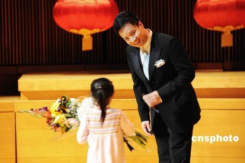 熱情的華盛頓“小粉絲”走上舞臺向閻維文獻花。