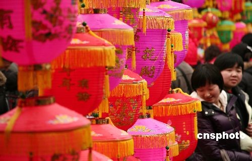 2月7日,市民在燈市上選購花燈。當(dāng)日農(nóng)歷正月十三,是一年一度的元宵節(jié)“上燈日”,南京夫子廟花燈市場生意紅火,五彩繽紛、樣式各異的花燈吸引眾市民爭相選購。