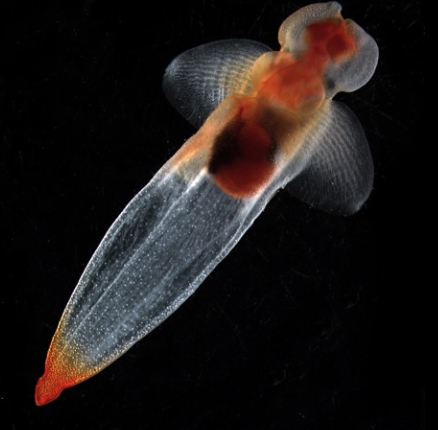 另外,在透明身軀里長出一對對咖啡色像是肋骨的構造,沒有心臟構造卻能活得好好的生物,則是“紐蟲”。