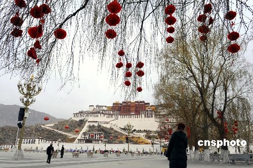 2月23日,西藏自治區(qū)首府拉薩市布達拉宮廣場張燈結彩喜迎藏歷新年,高原古城拉薩洋溢著濃郁的節(jié)日氣氛。中新社發(fā) 廖攀 攝