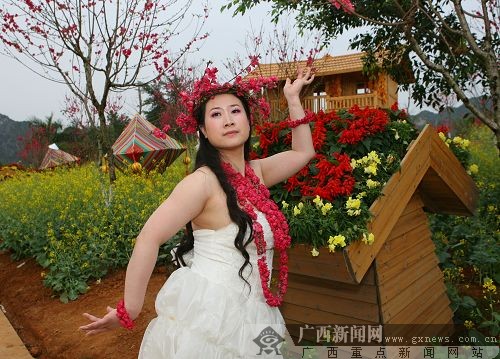 芙蓉姐姐在花叢中秀出經(jīng)典雷人的S造型。