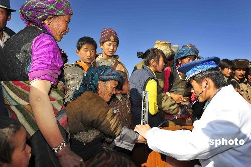 圖:駐藏空軍醫(yī)務(wù)人員為西藏農(nóng)戶義診