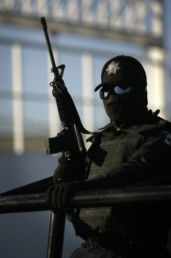 3月2日,墨西哥士兵和警察陸續(xù)抵達(dá)墨西哥北部城市華雷斯,以加強對當(dāng)?shù)囟酒纷咚胶捅┝顒拥拇驌袅Χ,維持治安。 華雷斯市與美國接壤,由于地理位置的特殊性,該市成為墨西哥販毒及暴力犯罪活動最為猖獗的地區(qū)之一,就在2008年,華雷斯就有1600余人遇害,被稱為墨西哥的“鬼城”。