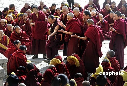 圖:拉薩哲蚌寺傳昭大法會辯經(jīng)激烈