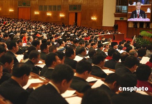 3月5日上午,十一屆全國人大二次會議在北京人民大會堂開幕,來自全國各地的人大代表認真聽取國務(wù)院總理溫家寶作《政府工作報告》。中新社發(fā) 任晨鳴 攝