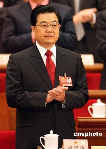 3月5日上午,十一屆全國(guó)人大二次會(huì)議在北京人民大會(huì)堂開幕,國(guó)家主席胡錦濤出席。中新社發(fā) 任晨鳴 攝