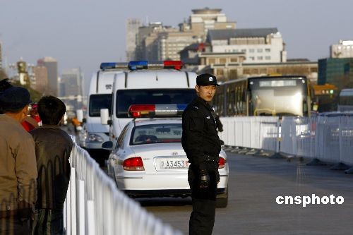 3月5日,為保證全國(guó)“兩會(huì)”順利進(jìn)行,北京天安門(mén)廣場(chǎng)加強(qiáng)安保工作。中新社發(fā) 鄭雄增 攝