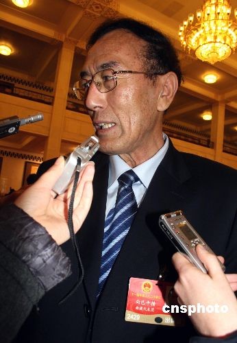 3月5日上午,十一屆全國(guó)人大二次會(huì)議在北京人民大會(huì)堂開(kāi)幕。圖為西藏自治區(qū)主席向巴平措接受記者采訪。中新社發(fā) 金立冬 攝