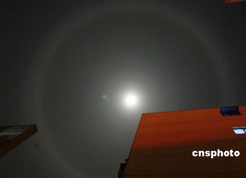 圖:山東出現(xiàn)罕見月暈天象(2)