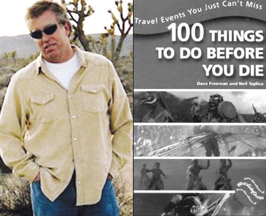 美國(guó)男子誓完成100個(gè)“人生夢(mèng)想”。美國(guó)加利福尼亞州洛杉磯市維尼斯地區(qū)47歲男子戴夫·弗里曼9年前和朋友合寫(xiě)了一本十分暢銷(xiāo)的旅行探險(xiǎn)向?qū)?shū)《100個(gè)生前必做之事》,他在書(shū)中向讀者推薦了世界上100個(gè)最怪異的旅游探險(xiǎn)地點(diǎn)和必做之事,包括到海地進(jìn)行伏都教“朝圣”、到西班牙和公牛一起賽跑、到澳大利亞進(jìn)行一年一度的夜間裸體沖浪競(jìng)賽、到美國(guó)北卡羅萊納州參加喊叫競(jìng)賽等。戴夫更是身體力行,發(fā)誓在生前做完書(shū)中所寫(xiě)的100件事情,然而令人意想不到的是,他只完成了其中50個(gè)“人生夢(mèng)想”,就于家中摔了一跤,不幸離開(kāi)人世。