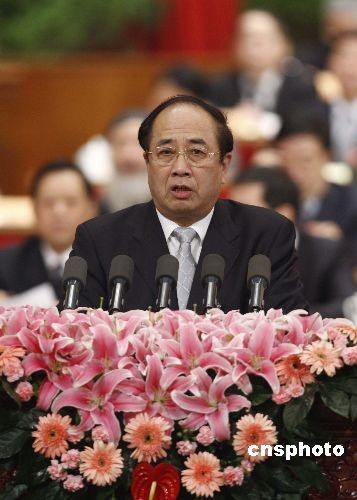 3月8日,全國(guó)政協(xié)十一屆二次會(huì)議舉行第三次全體大會(huì),全國(guó)政協(xié)外事委員會(huì)主任趙啟正在大會(huì)上作題為《集世界之智舉全國(guó)之力努力辦好上海世博會(huì)》的發(fā)言,上海世博會(huì)有望成為促進(jìn)中國(guó)經(jīng)濟(jì)克服困難、助推世界盡早走出金融危機(jī)陰霾的難得契機(jī)。中新社發(fā) 盛佳鵬 攝