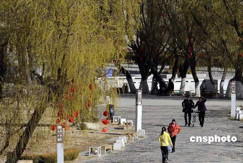 3月9日,西藏拉薩布達(dá)拉宮廣場(chǎng),柳樹已經(jīng)吐出新芽,高原圣城春意盎然。中新社發(fā) 廖攀 攝