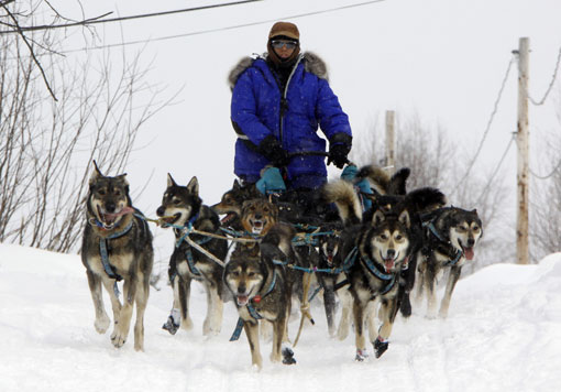 近日,在美國阿拉斯加的安克雷奇舉行了第三十七屆阿拉斯加狗拉雪橇大賽,來自各地的67支參賽隊一起向嚴寒和艱難的賽道發(fā)起挑戰(zhàn)。大賽的起點是阿拉斯加最大的城市安克雷奇,終點是靠近白令海峽的諾姆。賽程全長1800多公里,途中選手們穿越高山峻嶺,冰川凍河。由于路況復(fù)雜,天氣惡劣,這項賽事被認為是當今最具挑戰(zhàn)性的賽事之一。選手們需要大約9天的時間才能完成比賽,獲勝者將得到6萬9千美元的獎金和一輛皮卡。