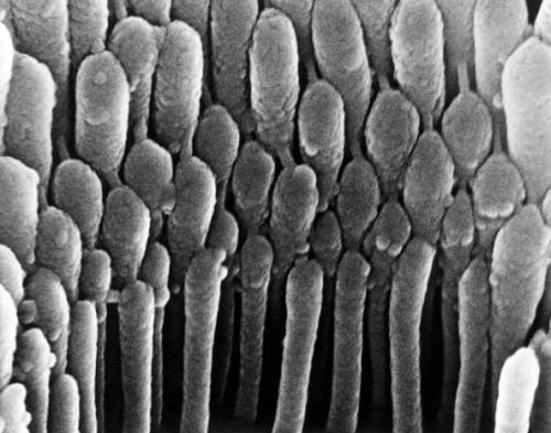 耳毛細(xì)胞:這張圖片看起來好像是在耳朵里面對耳毛細(xì)胞進行近距離觀察時拍攝的。耳毛細(xì)胞的主要功能是發(fā)現(xiàn)對聲震作出反應(yīng)時產(chǎn)生的機械運動。