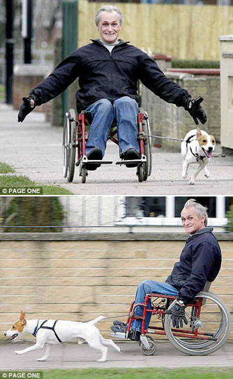 英殘疾者訓(xùn)練狗拉輪椅。據(jù)英國(guó)《每日郵報(bào)》報(bào)道,一只3歲大的杰克羅素梗每天為其殘疾主人拉輪椅,它已成為主人輪椅的小型發(fā)動(dòng)機(jī)。除非遇到車輛、貓和令其感興趣的氣味,否則它不會(huì)停下來(lái)。這只名叫科迪的杰克羅素梗套著特制的挽具,每天都拉著其主人艾倫-史密斯在諾丁漢郡克利夫頓外出兜風(fēng)。57歲的史密斯稱,他的這只寵物犬拉輪椅的時(shí)速可達(dá)24公里。史密斯因幼時(shí)患小兒麻痹癥而殘疾,不得不坐輪椅,史密斯49歲的妻子多娜一直負(fù)責(zé)照顧他。史密斯說(shuō):“科迪會(huì)在道路交叉處停下來(lái),看看是否有車輛。它的唯一缺點(diǎn)是,如果看到了一只貓或者另一只狗,它會(huì)停下來(lái),像老虎那樣臥著。它的肌肉很強(qiáng)健,獸醫(yī)說(shuō),它非常健康!笔访芩狗Q,令人感到奇怪的是,科迪只吃超市出售的一種品牌為“英雄”的狗糧。他說(shuō):“它不吃其它食物,我們?cè)嚵怂衅渌澄!?table border=0 cellspacing=0 cellpadding=0 align=left>