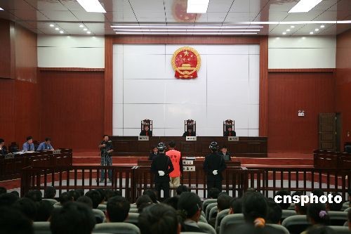 3月24日上午,云南蒙自警察開槍殺人一案在紅河哈尼族彝族自治州中級人民法院開庭審理,當?shù)貦z控機關以故意殺人罪對犯罪嫌疑人吉忠春進行起訴。庭審中,被害人的父母、妻子和兒子提起刑事附帶民事訴訟,請求依法追究吉忠春故意殺人的刑事責任并對其從重量刑,索賠包括搶救費、喪葬費、死亡賠償金、交通住宿費及其他各項費用總計98萬余元。中午12時30分,庭審結束,法庭宣布將擇日宣判。中新社發(fā) 鐘旭 攝