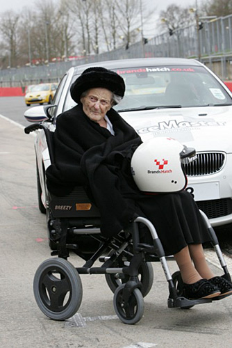 據(jù)英國媒體報告,這位老奶奶一生酷愛汽車,因此在生日慶祝之際坐上跑車,在專業(yè)賽道上以108英里/小時的時速疾馳以過車癮。