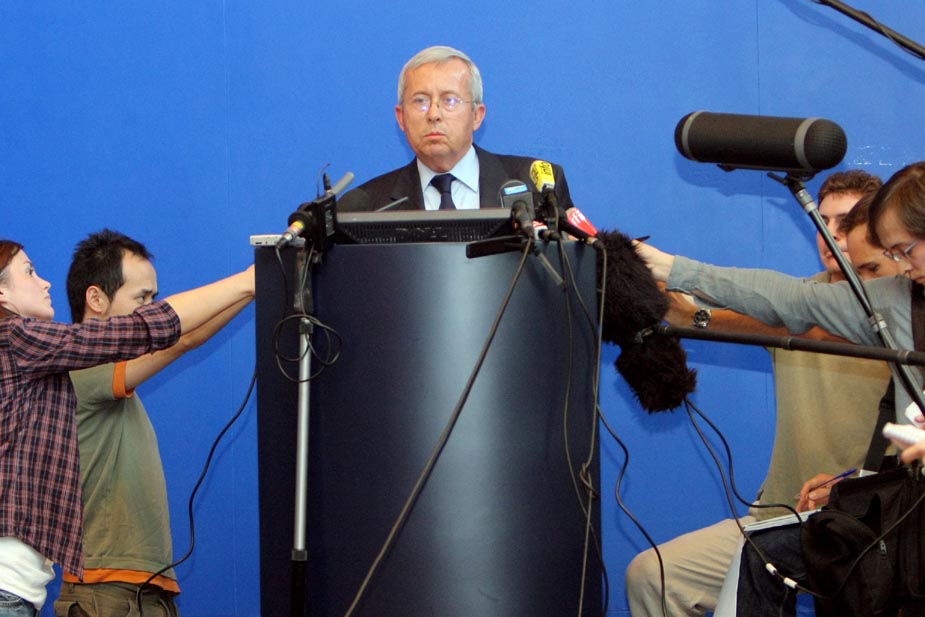 6月1日,法航一架載有228人的空客A330航班在大西洋上空失蹤。其中216名乘客,12名機組人員。客機上中國乘客的人數(shù)為9名。這架失蹤的客機是從巴西里約熱內(nèi)盧飛往法國戴高樂機場的。圖為法航總經(jīng)理皮埃爾-亨利·古爾容在法國戴高樂機場舉行法航失蹤客機的新聞發(fā)布會。